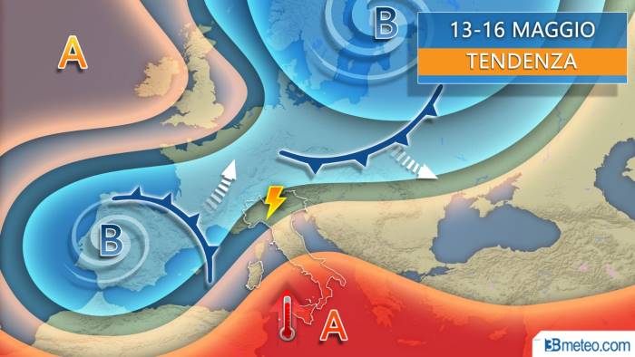 Si conferma una settimana dinamica per le regioni settentrionali, attualmente alle prese con una perturbazione responsabile di rovesci e temporali sparsi e un calo delle temperature” - spiega il meteorologo di 3bmeteo.com Edoardo Ferrara - “Ad ogni modo fino al weekend il tempo si manterrà variabile con ulteriori spunti temporaleschi, anche di una certa intensità, comunque più frequenti a ridosso di Alpi, Prealpi e in generale sul Nordovest. Non mancheranno anche parantesi asciutte e soleggiate, soprattutto sul Nordest. Qualche occasionale acquazzone potrà interessare anche il Centro, dove tuttavia prevarrà il tempo stabile anche se a tratti nuvoloso.”