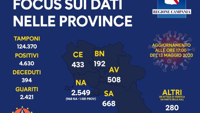 Totale guariti: 2.421 (di cui 2109 totalmente guariti e 312 clinicamente guariti. Vengono considerati clinicamente guariti i pazienti che, dopo aver presentato manifestazioni cliniche associate all’infezione virologicamente documentata da SARS-CoV-2, diventano asintomatici per risoluzione della sintomatologia clinica presentata ma sono ancora in attesa dei due tamponi consecutivi che ne comprovano la completa guarigione).
