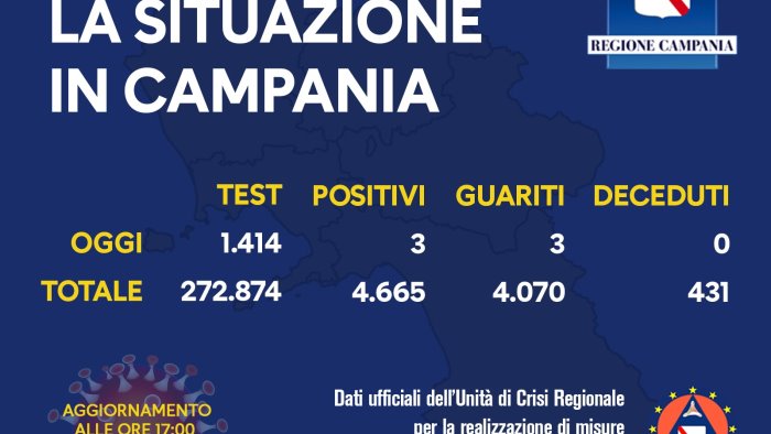 Totale guariti: 4.070 (di cui 4.066 totalmente guariti e 4 clinicamente guariti. Vengono considerati clinicamente guariti i pazienti che, dopo aver presentato manifestazioni cliniche associate all’infezione virologicamente documentata da SARS-CoV-2, diventano asintomatici per risoluzione della sintomatologia clinica presentata ma sono ancora in attesa dei due tamponi consecutivi che ne comprovano la completa guarigione).