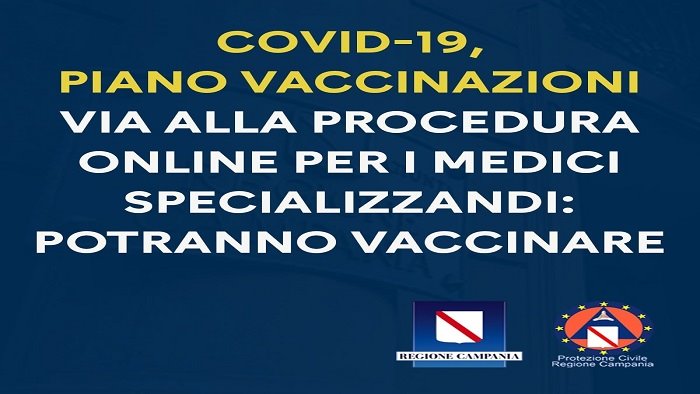 Covid-19, Piano somministrazione vaccini: aperta procedura online per medici specializzandi. La Regione Campania comunica che da oggi e fino al 30 marzo è attiva la procedura on line per l’acquisizione delle disponibilità dei medici specializzandi della Campania, sin dal primo anno di corso, per il Piano di somministrazione vaccini anti Sars-Cov 2.
