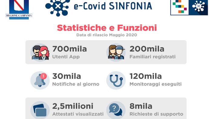 Oltre 700mila utenti, 200mila familiari registrati e superati i 2 milioni e mezzo di attestati visualizzati. Sono questi i numeri più importanti e significativi dell’App e-Covid Sinfonia, realizzata da Soresa SpA per la Regione Campania per fronteggiare l’emergenza Covid, a un anno dal suo lancio.