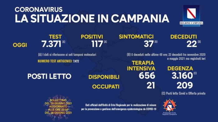 ** 0 deceduti nelle ultime 48 ore, 22 deceduti tra novembre 2020 e maggio 2021 ma registrati ieri.