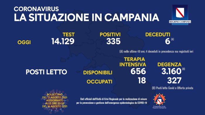 (*) nelle ultime 48 ore; 4 deceduti in precedenza ma registrati ieri