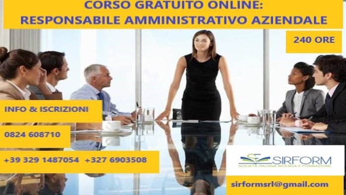 L'ente di Formazione, infatti, organizza il corso gratuito di “Responsabile amministrativo aziendale”: corso online da 240 ore euro rivolto a disoccupati e/o inoccupati con età comprese tra i 18 e i 65 anni.