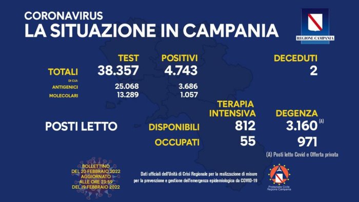 Questo il bollettino di oggi: (dati aggiornati alle 23.59 di ieri)