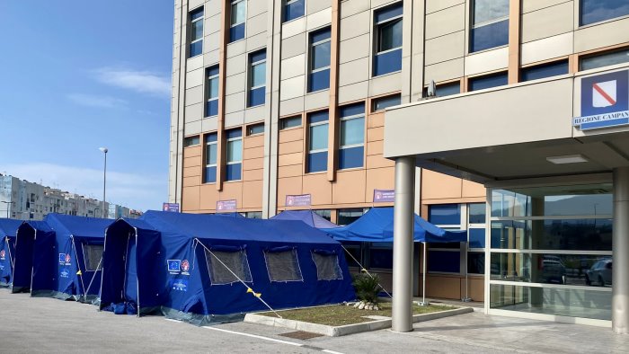 La tensostruttura, allestita dalla Protezione Civile della Regione Campania all'esterno del Centro che sta ospitando i profughi, sarà da domani mattina pienamente operativa con il coordinamento sanitario dell'Asl Napoli 1 Centro.