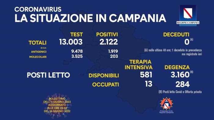 (*) nelle ultime 48 ore; 1 deceduto in precedenza ma registrato ieri.
