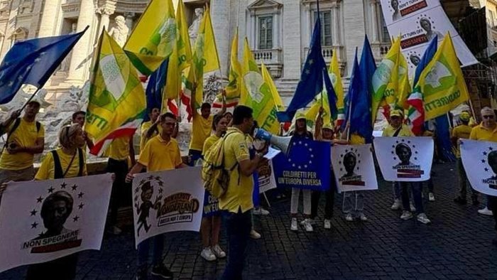 Dal palazzo Berlaymont, sede della Commissione Europea ai luoghi simbolo di Roma come il Colosseo, Fontana di Trevi e Piazza Navona, gli agricoltori hanno esposto striscioni raffiguranti Ursula Von der Leyen in una sorta di “Vonderland”, un territorio autoritario simbolo di un’Europa percepita come sempre più lontana dalla realtà, dai cittadini e dal mondo agricolo.