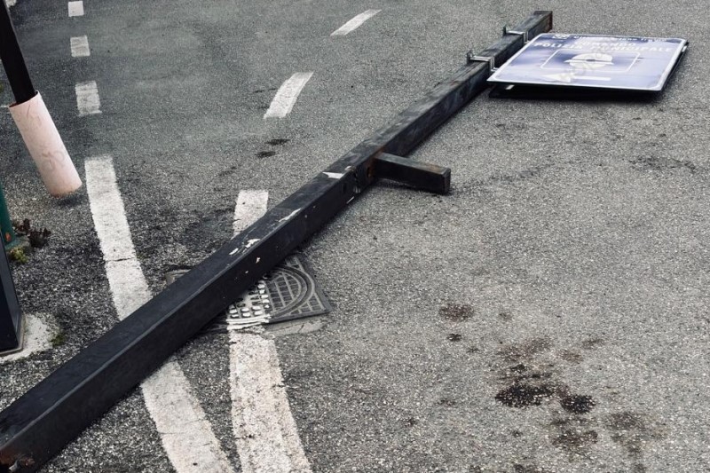 I primi danni: ad Ariano Irpino in piazza Mazzino il vento ha letteralmente abbattuto un palo con la tabella del comando di polizia municipale.