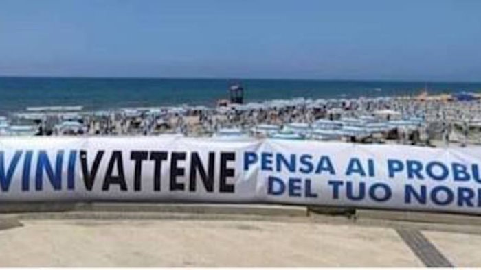 Mondragone, tensione e striscioni in attesa dell’arrivo di Salvini. Slogan contro il leader della Lega su alcuni lidi e su balconi del centro casertano focolaio di contagio da coronavirus nei giorni scorsi nei palazzi dell'ex Cirio, in un'area abitata da famiglie di braccianti bulgari di etnia rom. Dispiegamento di forze dell'ordine e sicurezza per impedire che in occasione della visita del leader leghista le tensioni possano superare il livello di guardia. Nei giorni scorsi, Salvini aveva lanciato accuse contro il governatore De Luca, ritenuto incapace di mantenere sotto controllo il contagio a Mondragone. Nel frattempo la zona rossa è presidiata dalle forze dell’ordine e da cinquanta militari che impediscono l’ingresso e l’uscita dall’area.