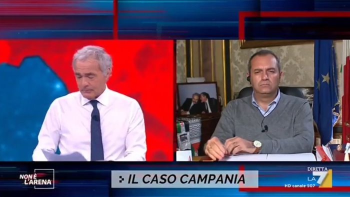 L'unita' di crisi della Regione Campania annuncia che si procedera' a sporgere denuncia per una serie di "dati completamente falsi" diffusi "nel corso di una trasmissione televisiva di una rete nazionale andata in onda ieri sera". L'unita' di crisi si riferisce alla trasmissione di La7 Non e' l'Arena che, nella puntata di ieri, ha dedicato spazio all'emergenza Covid in Campania. Tra gli ospiti della trasmissione c'era anche il sindaco di Napoli Luigi de Magistris. La Regione parla di un "ulteriore atto di sciacallaggio mediatico" ed elenca in 5 punti le notizie false che, a detta dell'unita' di crisi, sarebbero state riferite nel corso della trasmissione. Si precisa che sono falsi "il numero di terapie intensive e le cifre mostrate per la realizzazione dei posti letto, le notizie sul bollettino Covid della Regione, i dati sugli ospedali modulari e le cifre sulle risorse arrivate in Campania".