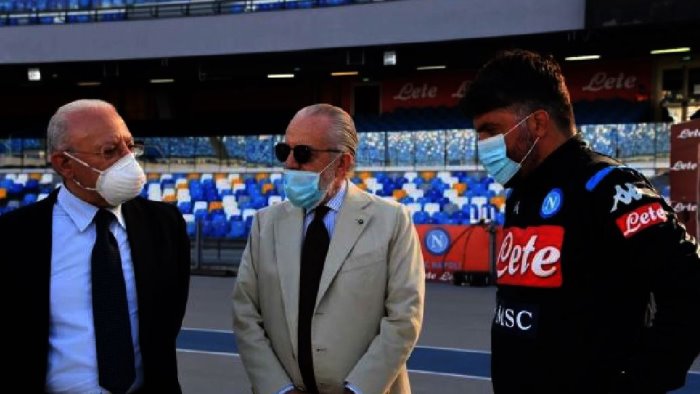 Cosi' il presidente della Regione Campania Vincenzo De Luca in merito alle dichiarazioni espresse dall'allenatore del Napoli dopo gli omaggi dei tifosi azzurri a Diego Armando Maradona. Gattuso, dopo il match di ieri contro la Roma, ha sottolineato di aver visto "troppa gente senza mascherina", invitando i tifosi a "fare i bravi perche' senno' tutti ne pagheremo le conseguenze". Ieri l'allenatore del Napoli, al termine della partita vinta 4-0 contro la Roma, ha richiamato al "buon senso" e all'uso delle mascherine.