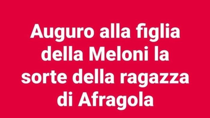 "Auguro alla figlia della Meloni la sorte della ragazza di Afragola": poche, terribili parole affidate ai social che sono diventate un caso. Il femminicidio di Afragola e il parallelismo con Gionevra, figlia della Presidente del Consiglio.