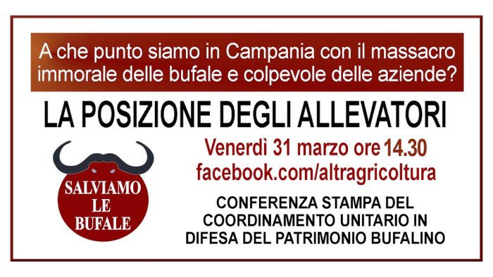 La conferenza stampa, (inizialmente prevista in mattinata, è stata spostata alle ore 14.30 per motivi logistici e per permettere la partecipazione, insieme a Fabbris, dell'avvocato Francesco Di Tella (coordinatore del soccorso contadino) e di Salvatore Foglia (allevatore in rappresentanza dell'associazione di tutela allevamento bufala mediterranea) La conferenza stampa di oggi pomeriggio può essere seguita in diretta sulla pagina https://facebook.com/altragricoltura. La stampa può intervenire ponendo domande e richieste di chiarimento direttamente dalla chat online di fb o (prenotandosi via chat al numero 3466483882) intervenendo direttamente via streaming