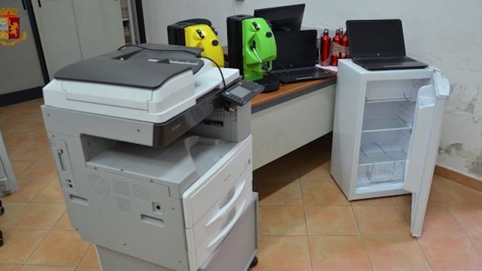 In casa avevano 2 pc, un minifrigo, due stampanti da ufficio, due macchine del caffè, borracce e persino una cartellina con pagelle e altri documenti: materiale che era stato rubato in una scuola, la Lorenzini di Caserta, a inizio gennaio, trovato dalla polizia di Caserta in casa di due coniugi di 41 e 44 anni.