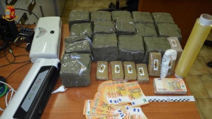 Maxi sequestro di droga della Squadra Mobile della questura di Caserta a Castello di Cisterna. Gli agenti, su indicazione della narcotici, stavano monitorando un'abitazione privata di un 28enne, Raffaele C. e notando dei movimenti sospetti, quando l'uomo ha incontrato un 34enne e un 31enne di Napoli e Foggia, li hanno bloccati e hanno fatto irruzione all'interno dell'abitazione. Qui hanno trovato oltre 16 chili di hashish diviso in panetti da 100 grammi l'uno, e ben 25mila euro in contanti oltre a materiale per il confezionamento dello stupefacente tra cui 2 macchine per sottovuoto, diversi telefoni cellulari impiegati per l’attività di spaccio e 2 autovetture, tra cui una dotata di un “vano”, celato dietro la targa posteriore, ove era possibile occultare la sostanza stupefacente durante il trasporto al fine di eludere i controlli. I tre sono stati arrestati e portati al carcere di Poggioreale in attesa del giudizio di convalida.