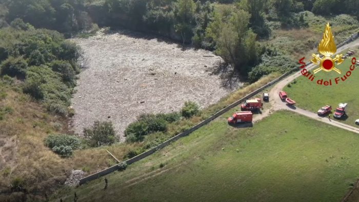 Una vasca- si dovrebbe trattare dell'ultima – di contenimento al centro delle ricerche di oggi di madre e figlio dispersi da martedì pomeriggio dopo che la loro AperCar era stata travolta da acqua, fango e detriti scesi da una collina per via di un nubifragio che aveva interessato l'intera zona di San Felice a Cancello.