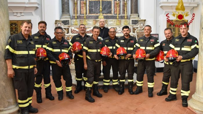 Caserta. Benedizione caschi degli otto neo caposquadra dei vigili del fuoco
