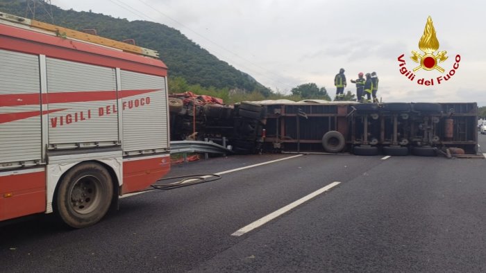 Dalle 15:00 una squadra di Vigili del Fuoco del Comando provinciale di Caserta, proveniente dal distaccamento di Teano, e intervenuta sull'autostrada A1 al Km 686, tra il casello di San Vittore e Caianello in direzione Sud, per un incidente stradale. Giunti sul posto i Vigili del Fuoco hanno trovato un autoarticolato che, per cause in corso di accertamento , finiva la sua corsa ribaltandosi in mezzo all'arteria stradale con il conducente incastrato tra le lamiere.