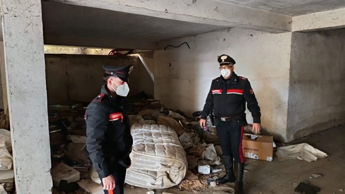 Un immobile incompleto e disabitato, trasformato in una vera e propria discarica abusiva, è stato sequestrato nel tardo pomeriggio di ieri ad Orta di Atella (Caserta) dai carabinieri della sezione Radiomobile della Compagnia di Marcianise. L'operazione rientra in un servizio di iniziativa mirato al contrasto degli illeciti ambientali nella Terra dei Fuochi. L'edificio, composto da tre corpi di fabbrica e da circa 50 locali, verosimilmente destinati a box auto e seminterrati, conteneva ingenti quantitativi di rifiuti speciali, pericolosi e non: mobilio, materassi, vernici, parti di autovetture, rifiuti solidi urbani e guaine.