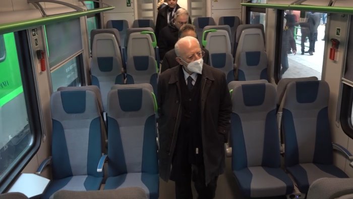 "Fino al 2015 la Regione Campania non aveva acquistato un treno nuovo e un pullman nuovo, nulla. Sulla tratta Piedimonte- Napoli noi abbiamo portato sette treni nuovi, due ristrutturati e 5 completamente nuovi. Ovviamente stiamo lavorando per migliorare ulteriormente il servizio per i pendolari. I treni nuovi significa puntualità nelle corse, non avere fermate per incidenti. Su questa tratta credo che abbiamo fatto un lavoro eccellente. Poi abbiamo criticità su altri servizi pubblici, in particolare l'area della Circumvesuviana dove abbiamo un ritardo per le forniture dei treni nuovi, ma va detto che in questi tre anni di Covid le aziende sono state completamente bloccate. Ora - ha aggiunto De Luca - abbiamo ripreso anche il lavoro delle forniture, e nell'arco di due anni avremo rinnovato tutto il palco dei pullman e dei treni regionali".