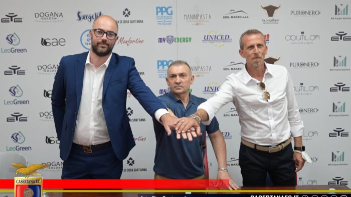 Inizia ufficialmente la nuova stagione della Casertana. Nella sala stampa "Iannotta" il presidente Giuseppe D'Agostino ha presentato il nuovo allenatore e il nuovo direttore sportivo, Carmine Parlato e Alessandro Degli Esposti.