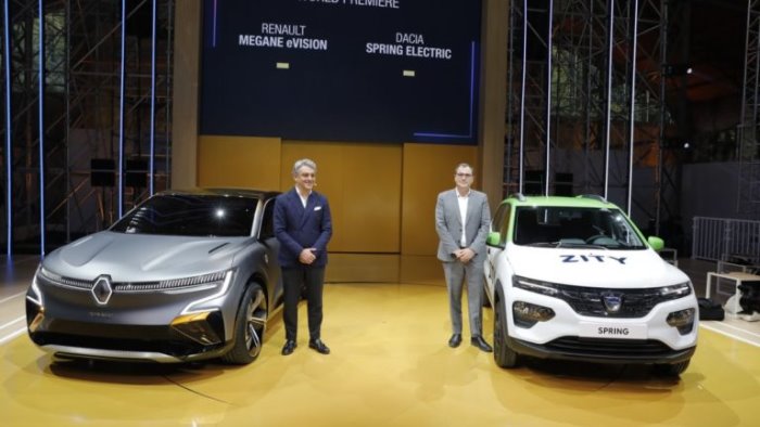 Con Renault eWays, il Gruppo ha condiviso la sua visione della transizione verso la mobilità a zero emissioni, grazie ai suoi nuovi prodotti e tecnologie. Si tratta di una nuova tappa importante per il Gruppo Renault che si posiziona come protagonista della mobilità sostenibile e del suo ecosistema, oggi e negli anni futuripra. Primo passo è la showcar Mègane eVision che reinventa il modello della berlina compatta abbinandolo ai codici delle coupè e dei SUV. Dallo stile innovativo al 100% elettrica può contare sulla nuovissima piattaforma CMF-EV dedicata alla mobilità elettrica. Un vantaggio che le consente di affrancarsi dalle dimensioni e dai codici tradizionali del segmento per proporre nuove linee e nuove proporzioni. Il risultato è una berlina di dimensioni esterne contenute ed abitabilità record. Circa 10 anni fa, Renault ha saputo compiere la svolta verso i veicoli elettrici. Questa competenza le consente, oggi, di lanciare una nuovissima generazione di modelli elettrici, di cui Mègane eVision è il simbolo. Anche l’altro marchio del Gruppo, Dacia ha la sua svolta elettrica. La Spring Electric, una piccola city car dal look moderno che sarà commercializzata dal 2021. Dopo Logan e Duster, Dacia Spring si appresta, a sua volta, a rivoluzionare il mercato rendendo i veicoli elettrici accessibili a tutti. Che si tratti di mobilità personale, condivisa o professionale, Spring propone una soluzione semplice, affidabile ed accessibile. Con un look rivoluzionario da SUV, è dotata di 4 veri posti, abitabilità record, motorizzazione elettrica semplice ed affidabile ed autonomia rassicurante. Leggera e compatta, Spring Electric può circolare per 225 km in ciclo WLTP misto e per 295 km in ciclo WLTP City, garantendo grande versatilità di utilizzo urbano, ma anche periurbano. Oltre alla versione di serie, Dacia propone due declinazioni inedite per le nuove mobilità: una versione adatta al mondo del car sharing, per la mobilità elettrica condivisa, e una versione commerciale denominata Cargo, per le consegne dell’ultimo miglio senza emissioni inquinanti.