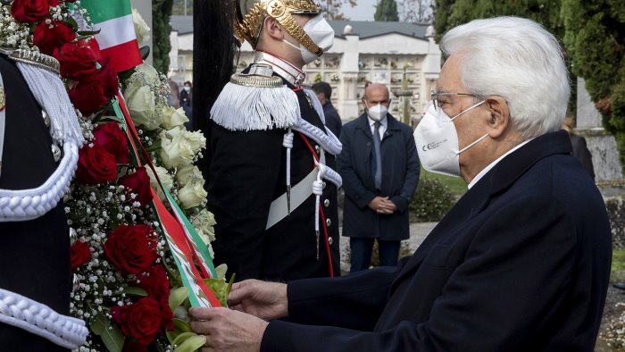 "Rivolgo il pensiero a tutti i defunti e, tra di loro, alle vittime del coronavirus. Ai tanti morti in solitudine. Ho scelto di farlo in questo cimitero dove è avvenuto il furto ignobile della croce posta a memoria delle vittime della pandemia". Così il presidente della Repubblica Sergio Mattarella a margine della commemorazione al cimitero di Castagneto, nel bresciano. "Ricordare i nostri morti è un dovere che va affiancato al dovere della responsabilità - prosegue - di proseguire nell'impegno per contrastare e sconfiggere questa malattia così grave mettendo da parte partigianerie, protagonismi ed egoismi per unire gli sforzi di tutti e di ciascuno, quale che sia il suo ruolo e le sue convinzioni, nell'obiettivo comune di difendere la salute delle persone e di assicurare la ripresa del nostro Paese". (ITALPRESS).