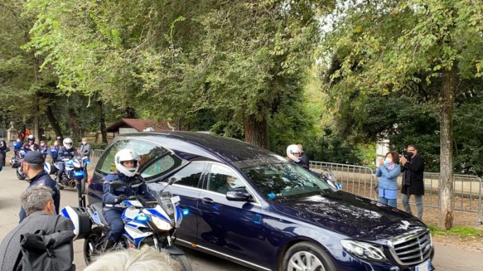 Un lungo applauso ha accolto il corteo funebre che ha accompagnato il feretro di Gigi Proietti a Villa Borghese, dove ad aspettarlo nel suo Globe Theatre si sono ritrovati romani e amici. All'interno del teatro non si può entrare, se non provvisti di invito. C'è un silenzio inusuale, rispettoso, qualcuno porta in mano un fiore, una rosa. Entra la bara nel teatro elisabettiano, così come lo aveva voluto lui, e parte un secondo, lunghissimo applauso, sia da parte di chi sta dentro sia da parte di chi sta fuori. Fuori, si aspetta, per vedere l'uscita del feretro, per un ultimo saluto prima che il corteo si trasferisca a Piazza del Popolo, nella Chiesa degli Artisti, dove si svolgerà la cerimonia funebre. (Italpress)