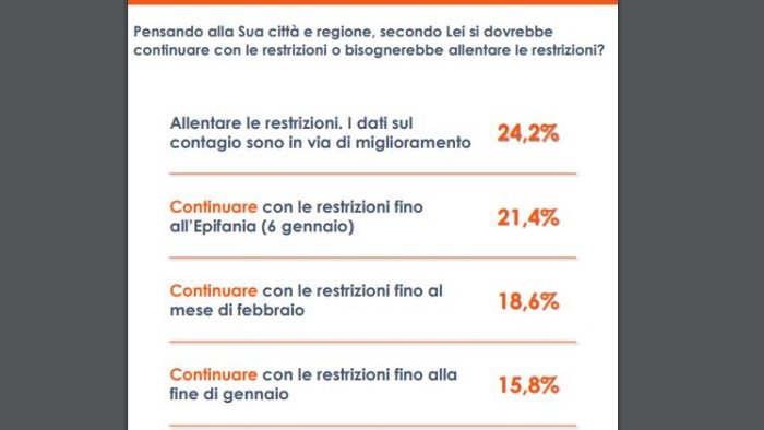Nel complesso, coloro che ritengono necessario continuare con le restrizioni raggiungono quasi il 70% del campione.