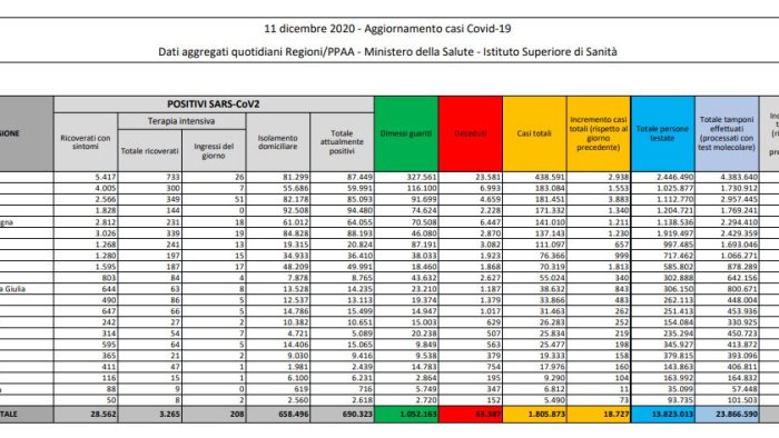 Prosegue, anche se leggermente, la crescita dei contagi in Italia. I nuovi positivi, secondo i dati del Ministero della Salute sono 18.727, contro i 16.999 delle 24 ore precedenti. Calano i decessi: 761 i morti (ieri erano stati 887). Sono invece 24.169 i guariti, mentre gli attualmente positivi si riducono di 6.204 toccando quota 690.323. L'incremento dei casi è anche da attribuire all'aumento dei tamponi: 190.461 in crescita rispetto ai 171.586 processati ieri, con un rapporto tamponi/positivi che si conferma sotto il 10%, esattamente al 9,8.