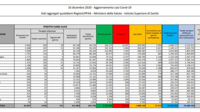 L’incremento dei nuovi positivi è da addebitare anche alla crescita dei tamponi effettuati: 199.489 rispetto ai 162.880 del giorno precedente. Le persone in isolamento domiciliare sono 615.883. I ricoverati con sintomi sono 26.897, con un calo di 445; in flessione pure le terapie intensive, con 2.926 ricoverati, 77 in meno in 24 ore. E anche i nuovi ingressi sono in riduzione, 91 (-8). Sul fronte delle regioni è il Veneto che registra il numero maggiore di nuovi positivi al Covid, 3.817: a seguire Lombardia (2.994) ed Emilia Romagna (1.238).