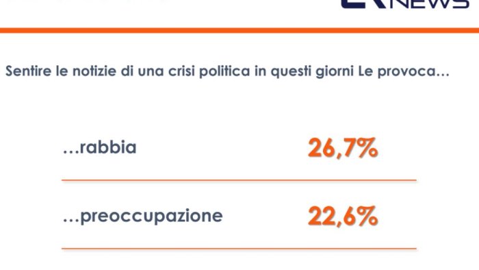 Negli ultimi giorni, le discussioni all'interno della maggioranza di Governo tra gli esponenti di Italia Viva e il premier Conte, stanno portando l'esecutivo alla crisi. Crisi che, dopo un anno di pandemia e il rischio di una terza ondata di contagi, non è compresa e quindi condivisa dagli italiani. I sentimenti prevalenti, nell'ascoltare queste notizie, sono rabbia, preoccupazione e sconcerto. A dirlo è un sondaggio di Euromedia Research.