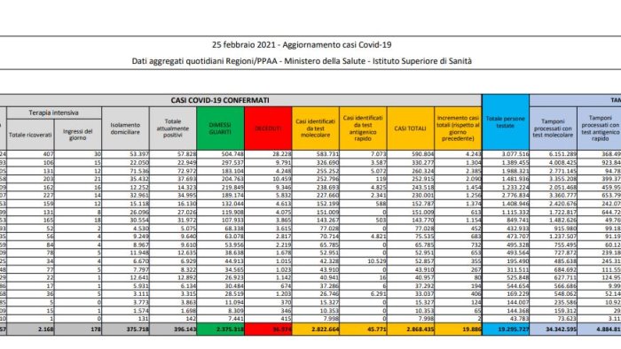 I guariti sono 12.853, mentre gli attuali positivi continuano a crescere di 6.710 unità attestandosi a 396.143. Anche i ricoverati nei reparti ordinari aumentano, sono 18.257 (+40), e di poco aumentano pure le terapie intensive, con 2.168 (+11) con 178 nuovi ingressi. Le persone in isolamento domiciliare sono 375.718. La regione con il numero più alto di nuovi positivi è la Lombardia (4.243), a seguire Campania (2.385) ed Emilia Romagna (2.090).