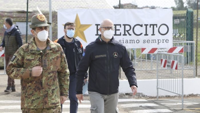 "Abbiamo ripreso a vaccinare a pieno ritmo con l'obiettivo di raggiungere i cinquecentomila vaccinati giornalieri dalla metà di aprile", ha detto Figliuolo all'uscita dal tendone delle vaccinazioni nel corso di un punto stampa. "Così facendo riusciremo a raggiungere l'80% della popolazione che dev'essere vaccinata per fine settembre", ha aggiunto il commissario, quantificando anche le rinunce che ci sono state dopo lo stop temporaneo a AstraZeneca. Sulle rinunce alle vaccinazioni dopo lo stop di AstraZeneca "i dati mi confortano molto perchè significa che i cittadini hanno capito che cosa debbono fare. L'obiettivo è non sprecare nessuna dose di vaccino. Le Regioni hanno delle liste con delle linee di priorità stabilite dal piano strategico del ministero della Salute. Soltanto alla fine della giornata, se non c'è più nessuno in lista, invece che buttare via le dosi, si può procedere anche a vaccinare volontari che si trovano lì sul posto, ma senza alcuna logica parentale o nepotistica", ha concluso il commissario straordinario. Impegno massimo per il proseguimento della campagna vaccinale anche da parte della Protezione Civile, come ha spiegato Fabrizio Curcio: "Ieri abbiamo fatto il punto operativo della situazione per limare i disequilibri che si sono visti nei vari ambiti regionali. Per la vaccinazione saranno impegnate quelle migliaia di volontari della Protezione civile che le Regioni chiederanno a supporto delle strutture vaccinali. Noi siamo pronti".
