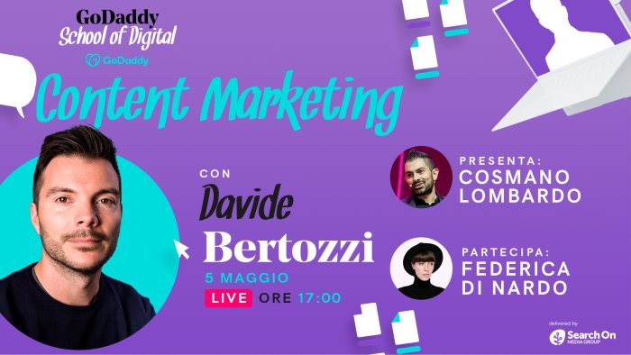 Creare contenuti accattivanti, che siano allo stesso tempo interessanti per il cliente finale, tanto da invogliarlo a compiere un’azione sul sito, è una sfida che ogni imprenditore dell’oggi deve saper compiere. E in suo soccorso arriva GoDaddy, il leader mondiale di hosting, che in occasione della terza lezione della School of Digital 2021, avrà come docente Davide Bertozzi, copywirter, direttore creativo e formatore, in un intervento dal titolo “Content marketing: come costruire un percorso di comunicazione”.