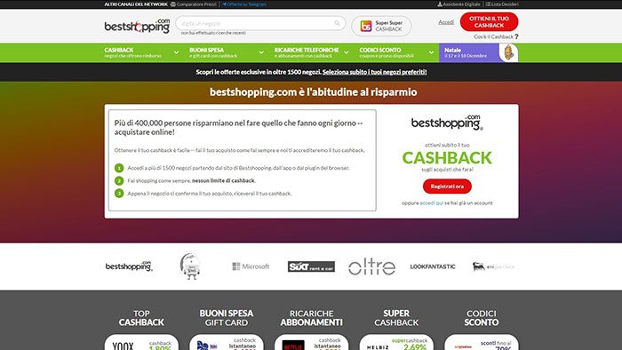 Oggi abbiamo il piacere di parlare di Bestshopping, una delle prime realtà in Italia a presentare il concetto di cashback online che si conferma ancora una volta tra i leader in Italia nel settore del risparmio online. Bestshopping è quindi un punto di riferimento per chi vuole comprare, ma allo stesso tempo risparmiare attraverso codici sconto, cashback e non solo. Sono presenti anche:
