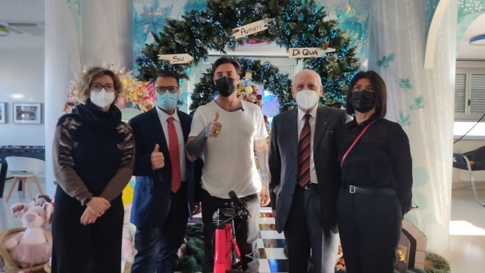 Con la sua bici, insieme a quelle di BikeIsLife#PedaliAMOITALIA, promotori dell'iniziativa, si è esibito sulla Piazza, creando una speciale coreografia insieme ai Babbi Natale presenti. Ma non solo. Subito dopo ha portato ai piccoli ricoverati i regali offerti dall'Associazione Robert F. Kennedy Human Rights Italia, attiva sul territorio nazionale con progetti di educazione ai diritti umani, advocacy e sostegno alla comunità.