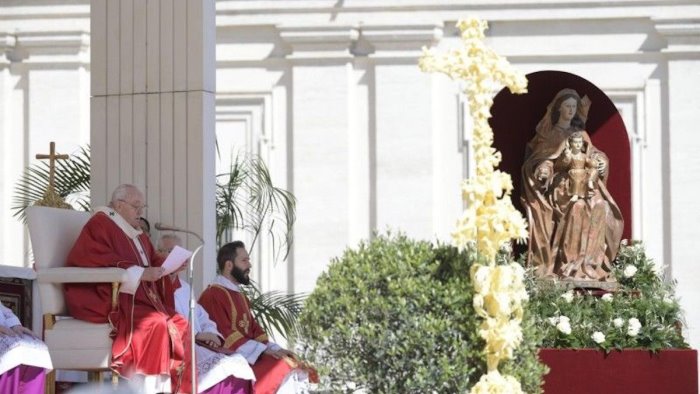 "Quando si usa violenza non si sa più nulla su Dio. Si dimentica perchè si sta al mondo e si arriva a compiere crudeltà assurde. Ciò lo vediamo nella follia della guerra, dove si torna a crocifiggere Cristo". Lo ha detto Papa Francesco nel corso dell'omelia a piazza San Pietro, in occasione della Domenica delle Palme.