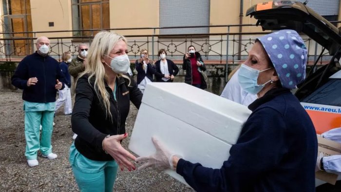 Sono 24.267 i nuovi casi di Coronavirus in Italia, su un totale di 242.060 tamponi effettuati nelle ultime 24 ore. E' quanto emerge dal quotidiano bollettino emesso dal Ministeri della Salute. I morti nell'ultima giornata sono stati 66, per un totale delle persone decedute da inizio pandemia, che raggiunge quota 166.697. Gli attualmente positivi sono 679.394. I ricoverati negli ospedali italiani con sintomi legati al Covid sono 5.369 (167 in meno di ieri), dei quali 248 in terapia intensiva (7 in meno di ieri). (Italpress)