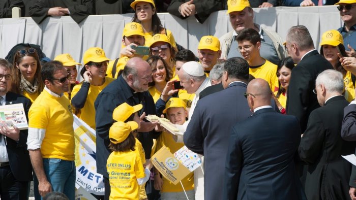 "Sugli abusi bisogna fare ancora tanto - ha detto Papa Francesco - ribadendo il suo impegno costante nel combattere ogni forma di violenza sui più piccoli. Questo messaggio ha sempre risuonato nel cuore della missione dell’associazione Meter.