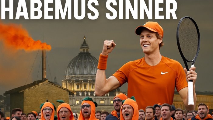 Il rientro di Jannik Sinner agli Internazionali BNL d’Italia ha acceso la fantasia del web, generando un meme che ha fatto il giro del Paese. La scena ricreata è quella della fumata bianca del conclave, ma in versione arancione, a simboleggiare il ritorno del numero uno del tennis mondiale. Un gioco grafico che ha ribaltato sacro e profano, rivelando quanto il tennista altoatesino sia ormai diventato un simbolo nazionale.