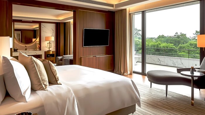 Le suite, caratterizzate da soffitti alti e affreschi storici, sono state reinterpretate dall’interior designer Pierre-Yves Rochon attraverso arredi contemporanei e palette equilibrate. I cortili interni diventano luoghi di quiete nel cuore della città, mentre gli spazi comuni mantengono un’atmosfera riservata e sofisticata.