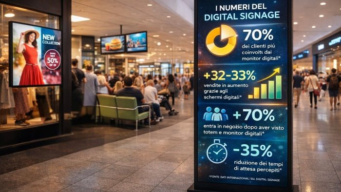 Le statistiche confermano che schermi e totem digitali non sono una semplice novità visiva: sono strumenti capaci di influenzare decisioni, aumentare vendite e migliorare l’esperienza complessiva del cliente.