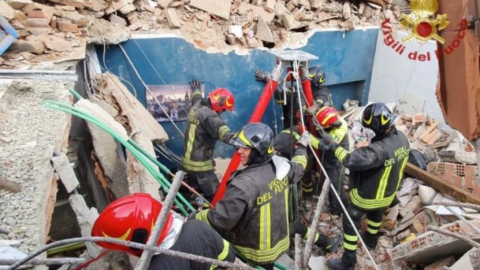 Un bambino è morto nel crollo di una palazzina di due piani in strada Bramafame a Torino. Altre tre persone sono state estratte vive dalle macerie. La palazzina è crollata stamattina, poco prima delle 9, a causa di un'esplosione. Sul posto sono intervenuti volanti della polizia e vigili del fuoco. A generare l'esplosione, secondo i primi riscontri, sarebbe stato un guasto alla caldaia dell'acqua calda. (Italpress)