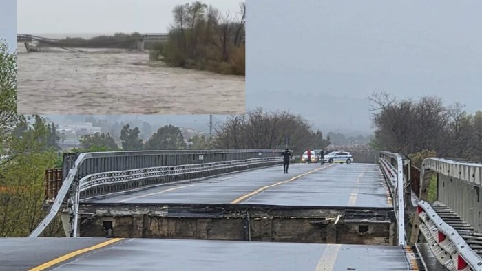 Il crollo del ponte sul Trigno. Il maltempo che da giorni colpisce il Sud Italia ha provocato il crollo di un ponte lungo la statale 16 “Adriatica”, tra Abruzzo e Molise, nel territorio di Montenero di Bisaccia. La struttura, che attraversa il fiume Trigno, ha ceduto dopo ore di piogge intense e l’ingrossamento del corso d’acqua. Il collasso ha di fatto interrotto i collegamenti tra le due regioni lungo la costa adriatica. L’area era già stata chiusa al traffico nelle ore precedenti proprio per motivi di sicurezza, evitando così conseguenze più gravi. Sul posto sono intervenute forze dell’ordine e squadre di emergenza per monitorare la situazione e mettere in sicurezza la zona.