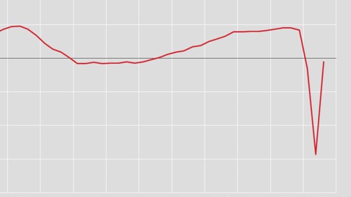 La variazione congiunturale è la sintesi di un aumento del valore aggiunto sia nel comparto dell'agricoltura, silvicoltura e pesca, sia in quello dell'industria, sia in quello dei servizi. Dal lato della domanda, vi è un contributo positivo sia della componente nazionale (al lordo delle scorte), sia di quella estera netta. La variazione acquisita per il 2020 è pari a -8,2%.