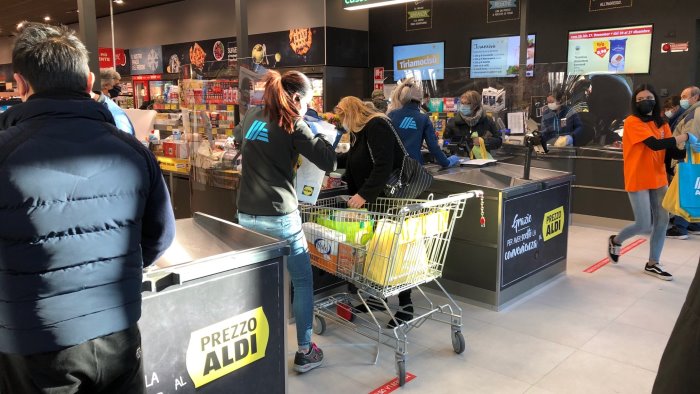 "L'approvvigionamento di cibo e bevande è assicurato in Italia grazie al lavoro di 740mila aziende agricole e stalle, 70mila industrie alimentari e una capillare rete di distribuzione con 230mila punti vendita tra negozi, supermercati, discount e mercati contadini di Campagna Amica". E' quanto afferma la Coldiretti nell'invitare ad evitare le file ai supermercati che si sono create con l'annuncio della stretta di Pasqua per l'avanzare dei contagi. "Le attività della filiera alimentare dai campi agli scaffali - sottolinea la Coldiretti - non si fermano con impegno quotidiano di oltre 3 milioni di persone nell'Italia anche in rosso e arancione. Un sistema che - continua la Coldiretti - ha dimostrato la sua efficienza durante tutte le fasi piu' acute di diffusione della pandemia durante la quale non e' mai mancato il cibo sugli scaffali e nelle dispense delle famiglie. Occorre dunque evitare inutili file che - precisa la Coldiretti - favoriscono gli assembramenti ed aumentano il rischio della diffusione del contagio ma anche mettono inutilmente sotto stress il sistema dei rifornimenti e i lavoratori coinvolti".