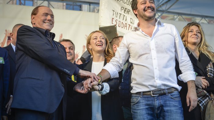 "Discussione parlamentare urgente e voto punto per punto sulle misure previste nel Dpcm. Queste sono sono le richieste del centrodestra dopo un vertice tra Matteo Salvini, Giorgia Meloni e Antonio Tajani (Silvio Berlusconi collegato da remoto). Il centrodestra - come fanno sapere fonti interne - ritiene surreale che, stante lo stato di emergenza Covid e con drammatiche restrizioni della liberta' degli italiani, il Senato stia discutendo di regolamenti europei e la Camera di omotransfobia.(ITALPRESS).