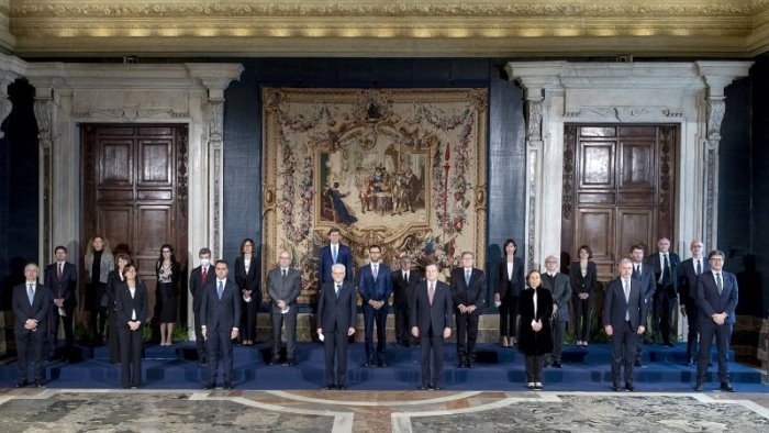 Con il giuramento avvenuto alle 12 al Quirinale davanti il capo dello Stato Sergio Mattarella, il nuovo presidente del Consiglio Mario Draghi, che ieri in serata aveva sciolto la riserva, è ufficialmente in carica. Con lui anche la squadra del nuovo esecutivo, composta da 23 tra tecnici e politici che, sfilando uno per volta, ha compiuto il rito siglando anche il verbale. Il via libera al nuovo Esecutivo era arrivato dopo il colloquio di ieri sera tra il presidente della Repubblica e il presidente del Consiglio incaricato, durato circa 40 minuti. Nel Governo 15 politici e 8 tecnici. Draghi dopo la foto rito si è recato a Palazzo Chigi per la cerimonia del passaggio della campanella con il premier uscente Giuseppe Conte.